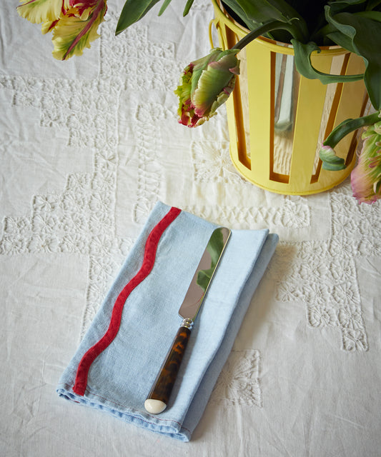 Scallop Linen Napkins, Set Of 4, Blue